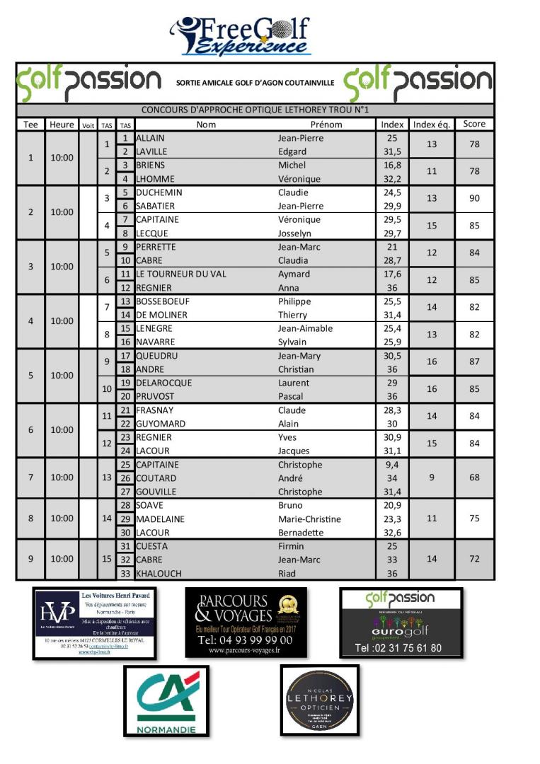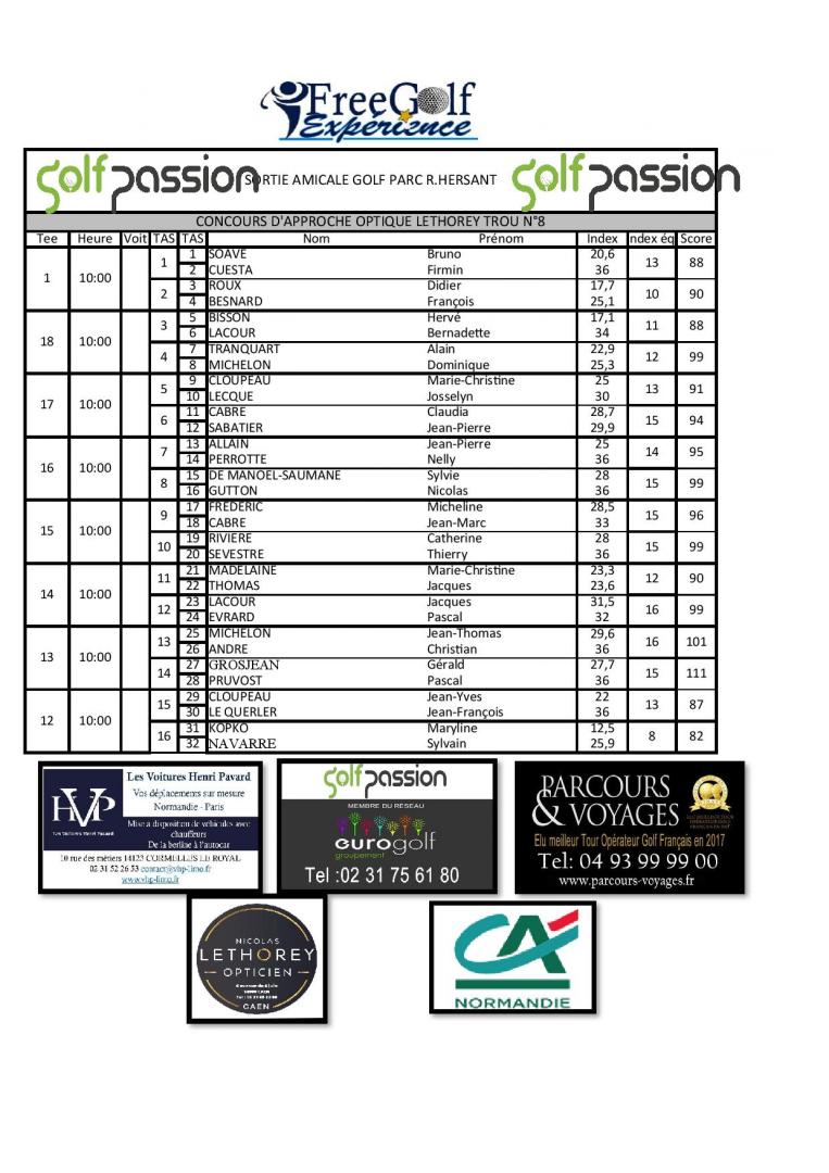 L'OPTIQUE LETHOREY (6 avenue du 6 juin à Caen) qui sponsorise le concours d'approche aura permis à FREDO et Christian DELAMARRE de remporter gourdes et serviettes logotées.