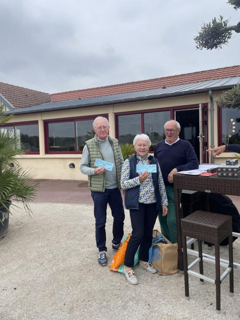 Nouveauté pour cette année 2025, la première paire tirée au sort se voit offrir sa prochaine participation à une sortie. C'est donc le duo Sylvie BLEAS/Jean Bertrand LEFEBVRE qui inaugure la formule. Plusieurs autres équipes auront été tirées au sort et repartent avec des chèques cadeaux de 25€ et des balles offertes par notre partenaire GOLF PASSION, ainsi qu'avec des balles offertes par FREEGOLF EXPERIENCE.